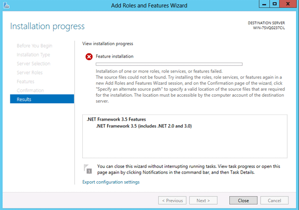 Hur installerar jag .NET Framework 3.5 på Windows Server 2012 (R2)?