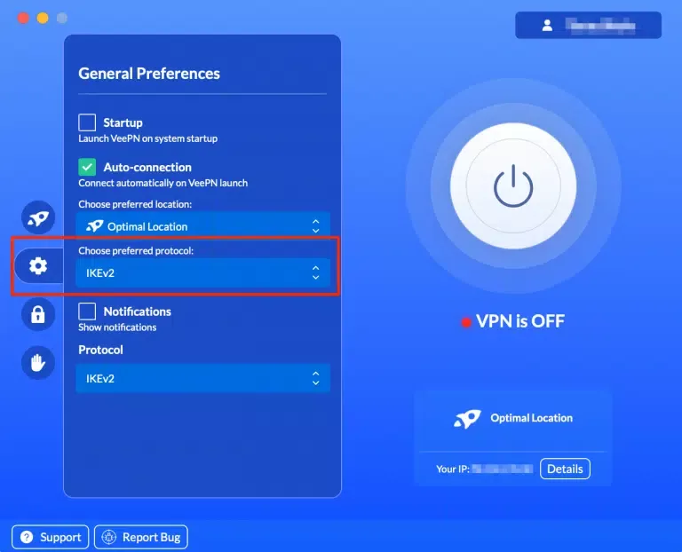 - Välj ett VPN-protokoll.IKEv2/IPsec anses vara den bästa VPN för strömmande media när du reser eftersom den ger bra hastigheter och effektivt övervinner geoblockeringar.