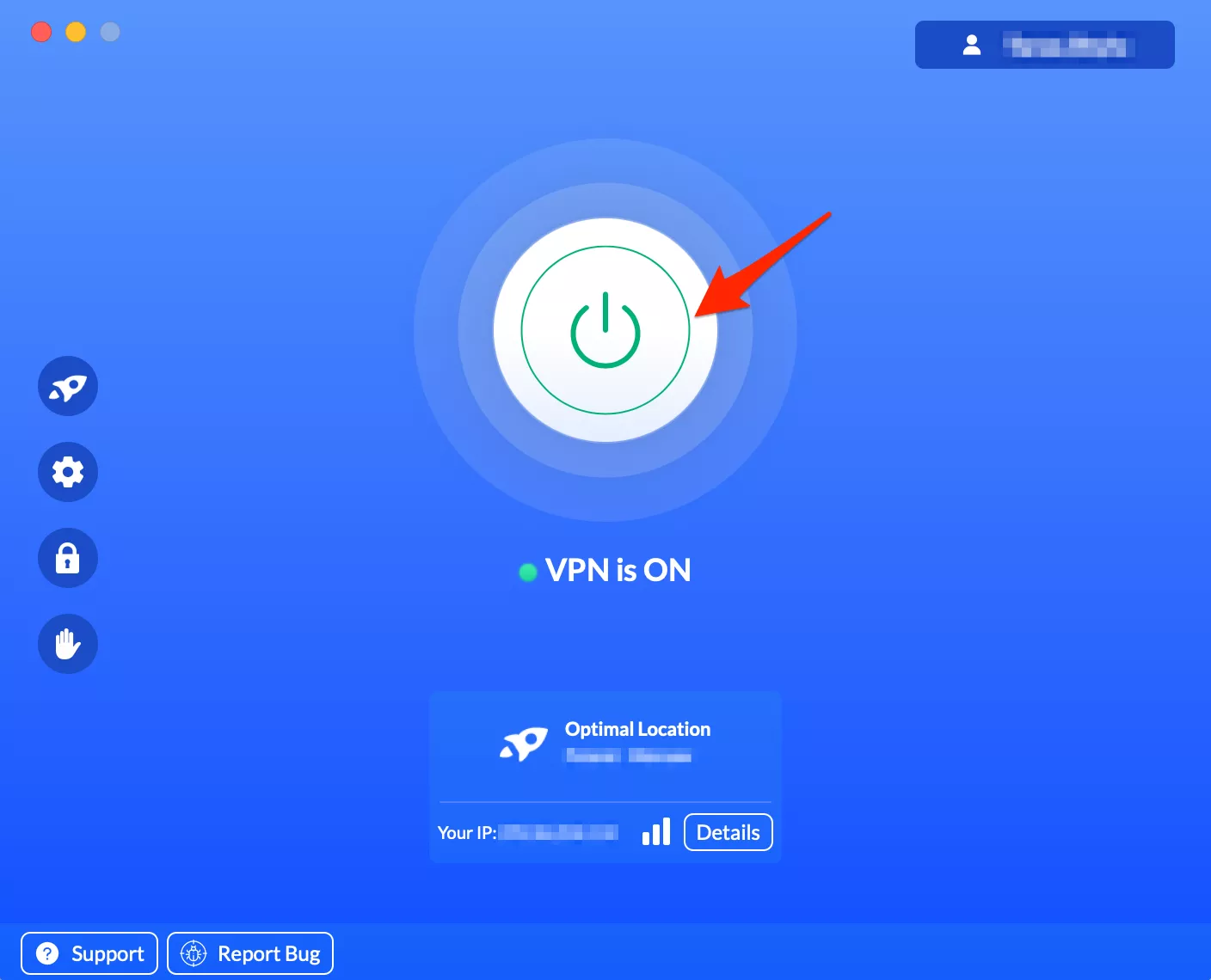 - Slå på ditt VPN.Tryck bara på den stora knappen i din VeePN-app – och njut av din surffrihet.