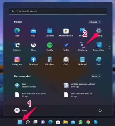 - Klicka påStartoch öppnaInställningar.