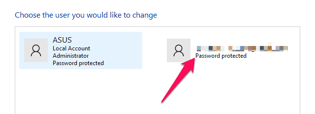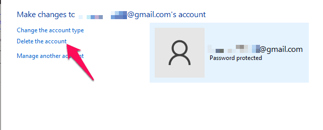 - Välj det användarkonto du vill ta bort och klicka påTa bort kontot.