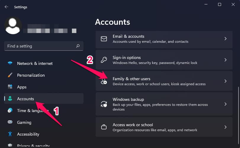 - Navigera tillkontonfliken och klicka påFamilj och andra användare.