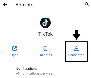 Om ditt internet och TikToks server är bra, är det förmodligen något fel med själva appen. För att fixa det kan du prova att tvångsstoppa TikTok-appen, stänga den från bakgrunden och sedan starta om den.