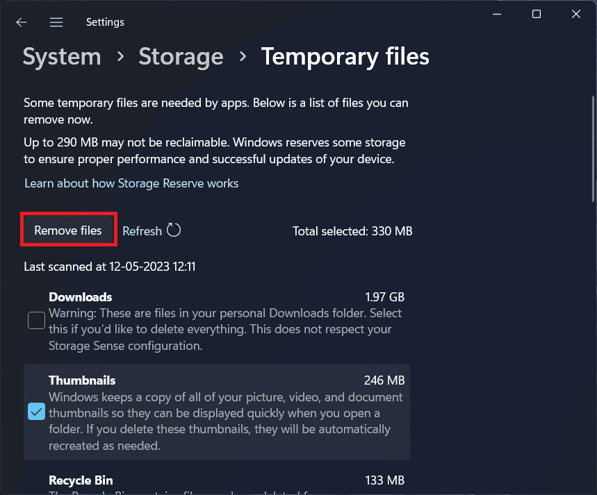- När du är klar klickar du påTa bort filerför att rensa de temporära filerna.