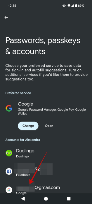 Gå tillInställningar -> Lösenord, lösenord och konton, tryck sedan på varje konto för att se om synkronisering är på eller av. Beroende på din telefonmodell kan avsnittet du behöver leta efter vara justkonton. Tryck på ett visst konto.