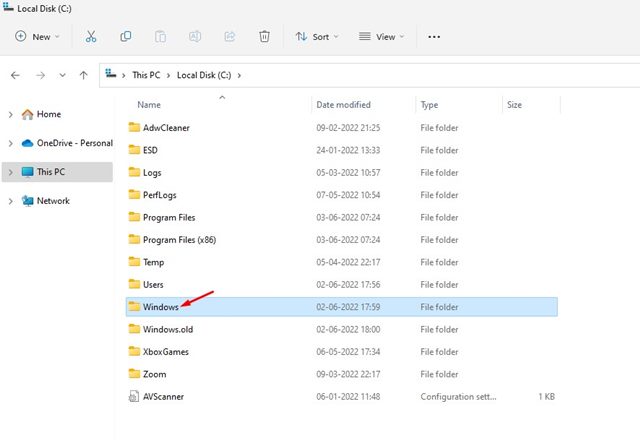 2. På systeminstallationsenheten, vanligtvis Local Disk C:, dubbelklickar du påWindows.