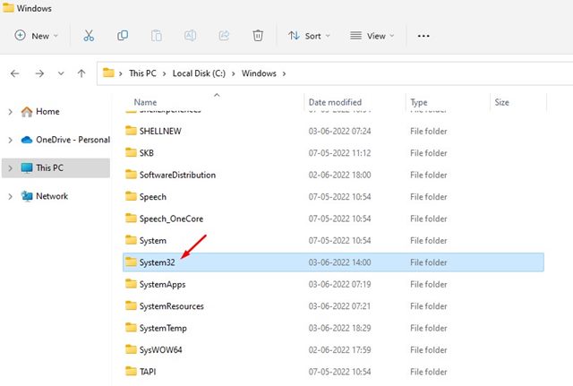 3. I Windows-mappen, hitta och dubbelklicka påsystem32mapp.