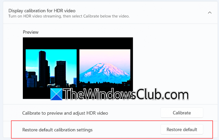 Om du har förstört bildskärmskalibreringen för HDR-video kan du återställa den till standardvärdena genom att följa dessa steg: