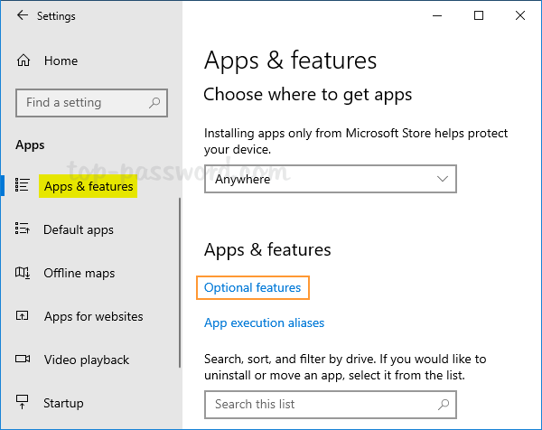 - Presione elventanastecla +Ipara iniciar la aplicación Configuración. SeleccionarAplicacionesen la barra lateral izquierda y luego haga clic en "Aplicaciones y características”en el panel derecho.