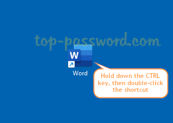 - Mantenga presionado elCONTROLy luego haga doble clic en el acceso directo de Word en su escritorio, o haga clic en el acceso directo que aparece en el menú Inicio o en la barra de tareas.