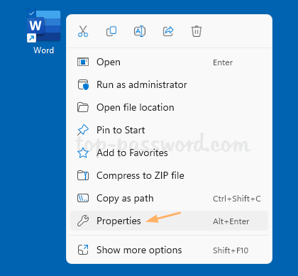 - Haga clic derecho en el acceso directo de Microsoft Word en el escritorio y luego seleccionePropiedadesen el menú emergente.