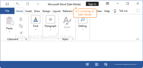 - Iniciará inmediatamente Microsoft Word en modo seguro, sin cargar ningún complemento ni extensión.