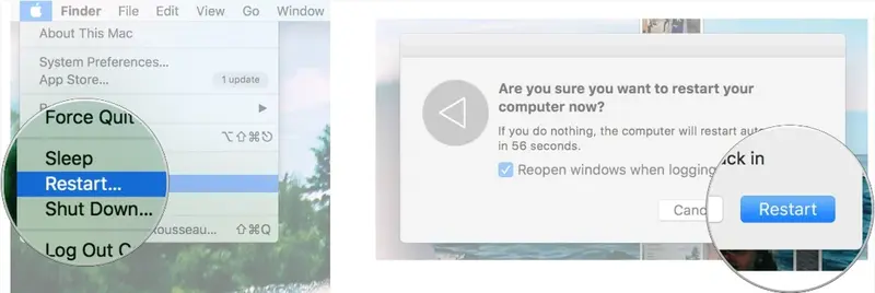 A veces, un simple reinicio puede resolver fallos temporales del software. Vaya al menú Apple y seleccione "Reiniciar".