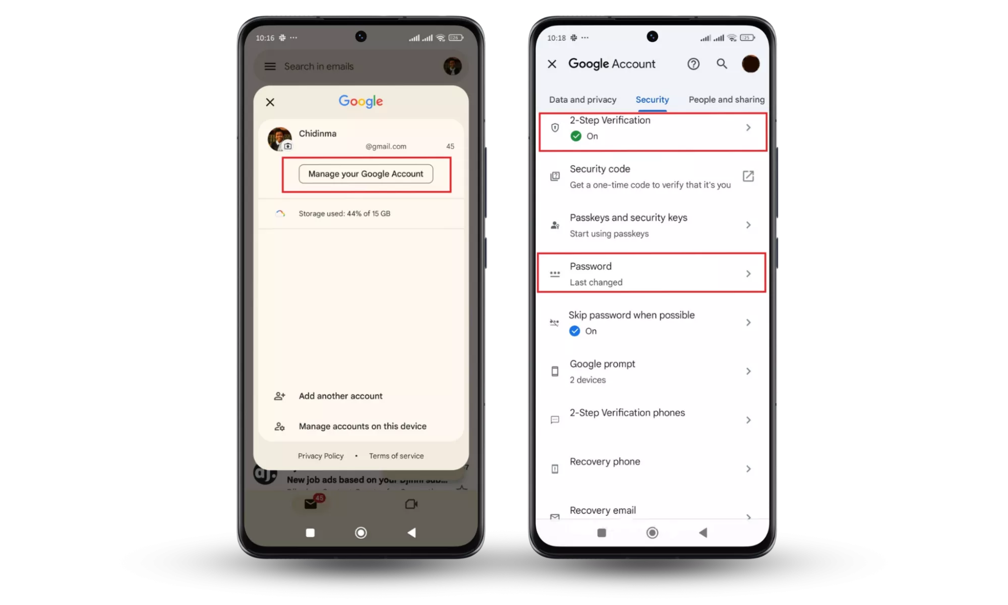 También puedes agregar seguridad adicional con un proceso de verificación de dos pasos, claves de acceso y mensajes de Google.