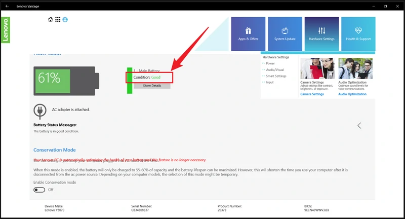 Paso 2: navegue a la página de la batería para verificar el estado de la batería.