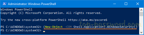 Abra Windows PowerShell como administrador y luego ejecute este comando:(New-Object -COM Shell.Application).WindowsSecurity()