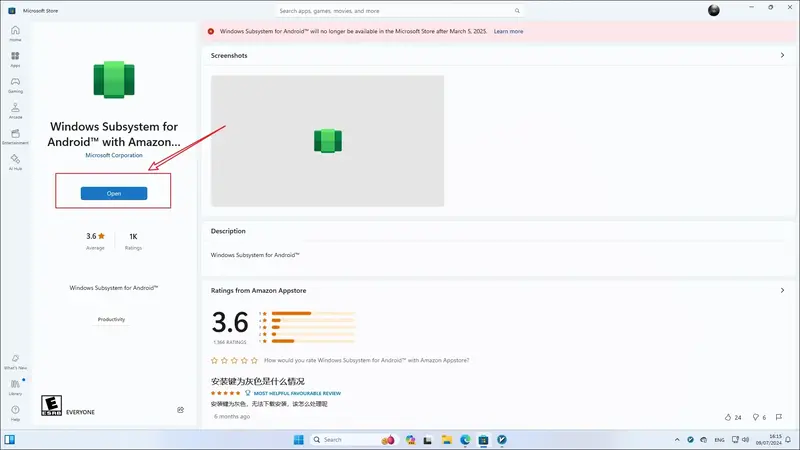 -Puedes hacer clic aquí paraDescargue WSA desde su tienda de Microsoft con AmazonAppStore.