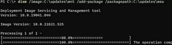 dism /image:C:updatesmnt /add-package /packagepath:C:updatesmsu
