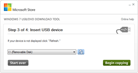 Por favor descargue elHerramienta de descarga de USB/DVD de Windows 7haciendo clicaquíy siga los pasos a continuación para crear su disco extraíble con la instalación de Windows.