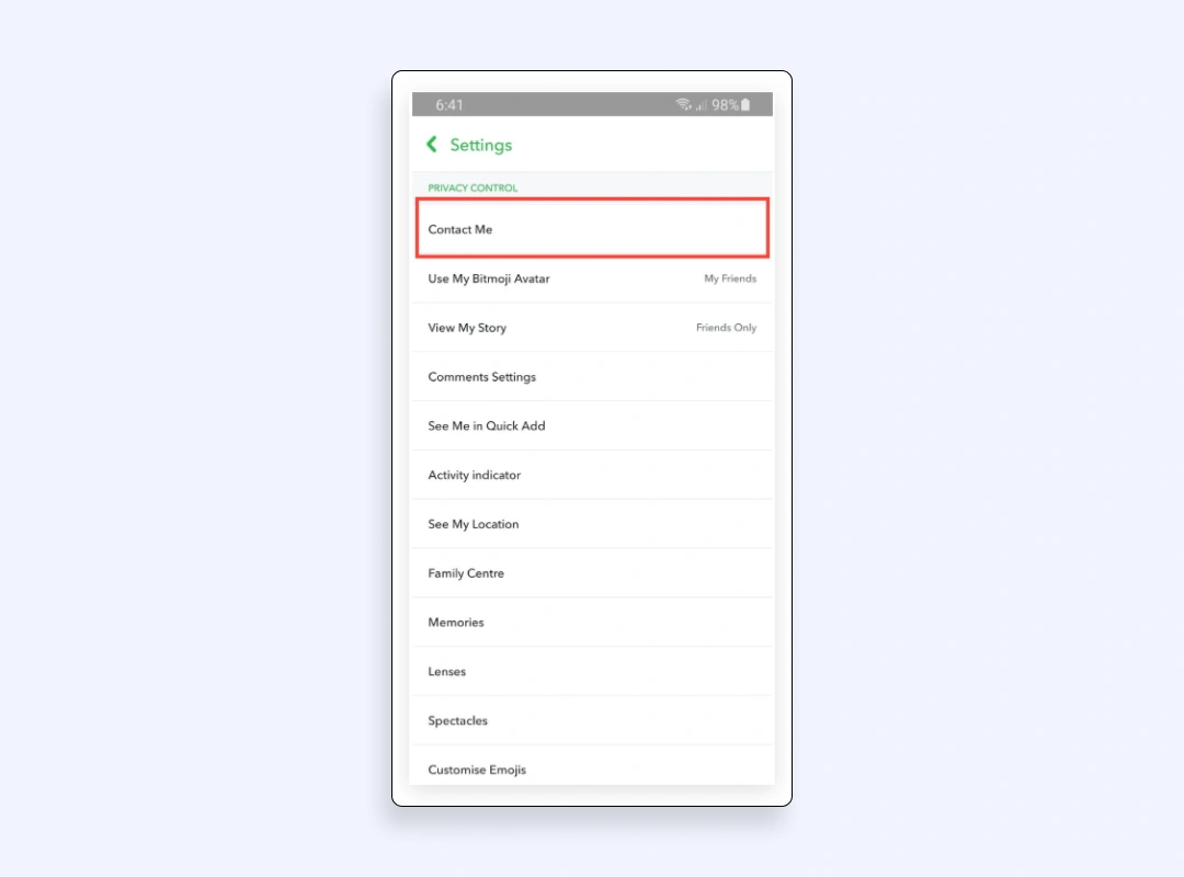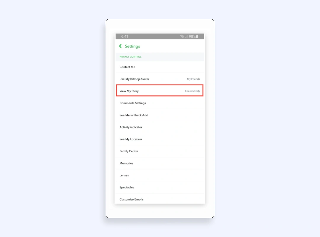Nivel 1. Cambiar la configuración de privacidad integrada de Snapchat
