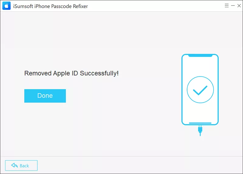 Paso 9: Después de unos minutos, cuando la pantalla del software muestra un mensaje de éxito, la ID de Apple se eliminó de su iPhone. Luego podrá acceder a su iPhone e iniciar sesión con una nueva ID de Apple.