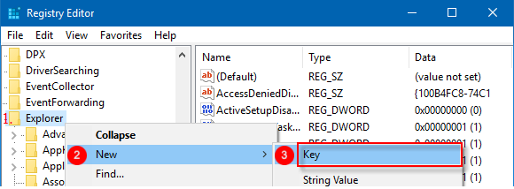 Haga clic derecho enExplorador, seleccionarNuevo>Llave, luego dale un nombreIconos de concha.