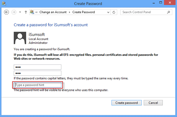 1. Cree una sugerencia de contraseña al crear una contraseña para su cuenta de Windows 8.1 en Surface. Una vez que haya olvidado la contraseña, la sugerencia de contraseña le recordará la contraseña.