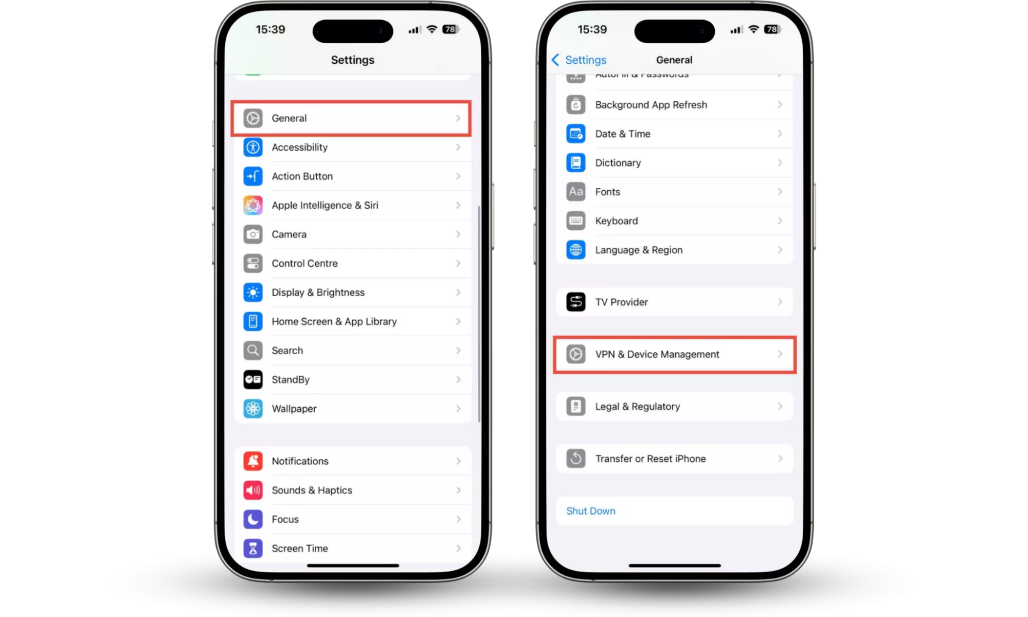 Pasos 1-2: Configuración > General > VPN y administración de dispositivos > eliminar perfilesCómo evitar que rastreen tu teléfono