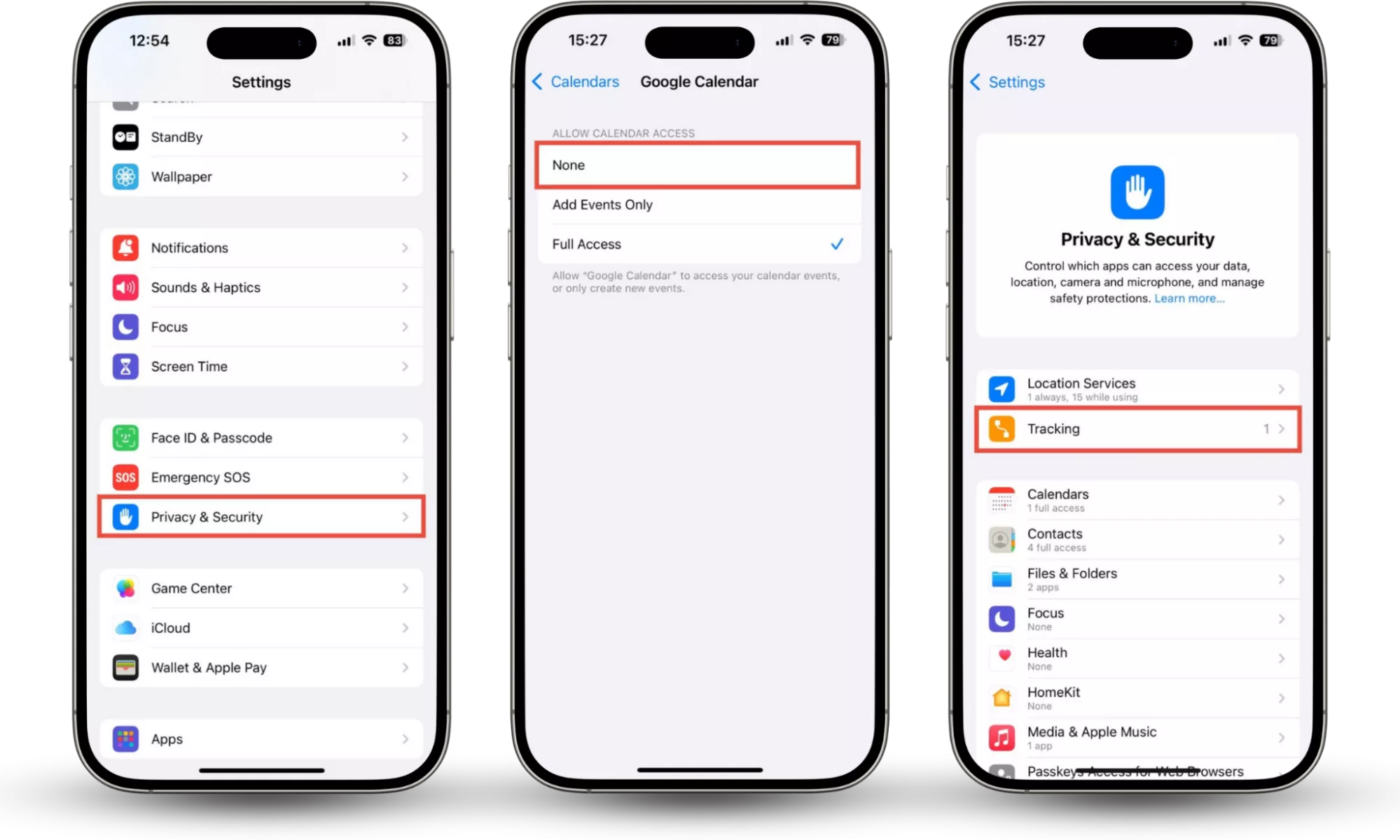 Pasos 1 a 3: Configuración > Privacidad y seguridad > seleccione una función > seleccione una aplicación > deshabilite > Seguimiento > verifique la configuración5.2 Cambiar permisos de aplicaciones en Android