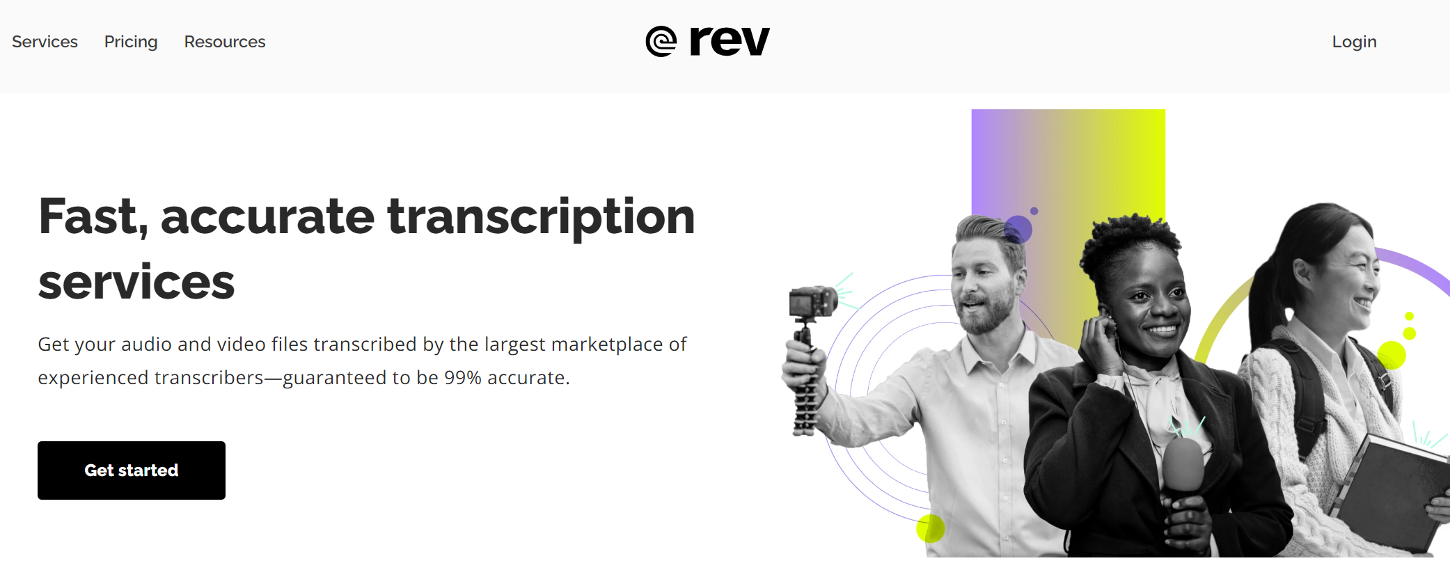 - Alta precisión:Los transcriptores humanos de Rev son expertos en el manejo de diversos acentos, dialectos y matices con los que la IA puede tener dificultades.