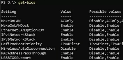- Enumere la configuración del BIOS en el dispositivo Lenovo con PowerShell