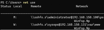 net use m: \sshfs.r[email protected]ps /user:administrator