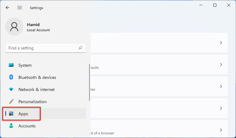 Paso 1:Hacer clic enAplicacionesen la Configuración.