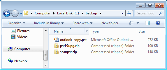 - Descargue estas dos utilidades pst19upg.zip y scanpst.zip, guárdelas en su carpeta local C:\backup y descomprímalas. pst19upg.exe es la herramienta integrada disponible en Outlook 2003 o incluso en una versión anterior, mientras que puede acceder a scanpst.exe desde cualquier versión de Outlook.