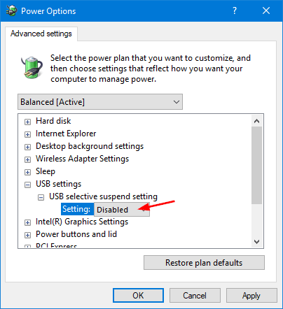 Nota:Windows borrará la casilla de verificación "Permitir que la computadora apague este dispositivo para ahorrar energía" cuando el dispositivo se desconecte del puerto USB o se reinicie la PC. Para evitar que esto suceda, utilice el método siguiente para desactivar la configuración de suspensión selectiva de USB.