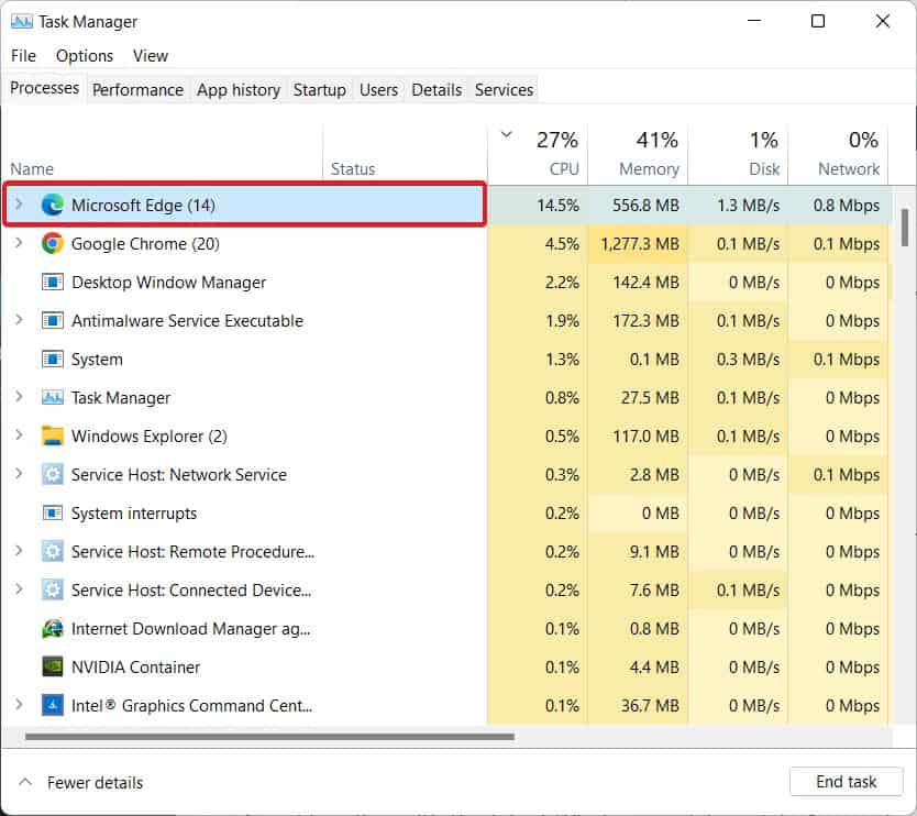 - Ahora, en la lista de aplicaciones en ejecución, busqueBorde de Microsoft.