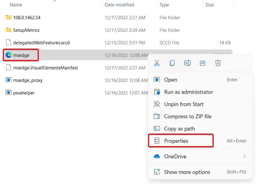 - Desde allí, haga clic derecho enmsedge,y en el menú desplegable, haga clic enPropiedades.