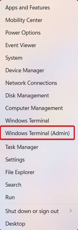 - Haga clic derecho en el botón de inicio y luego haga clic enTerminal de Windows (administrador).