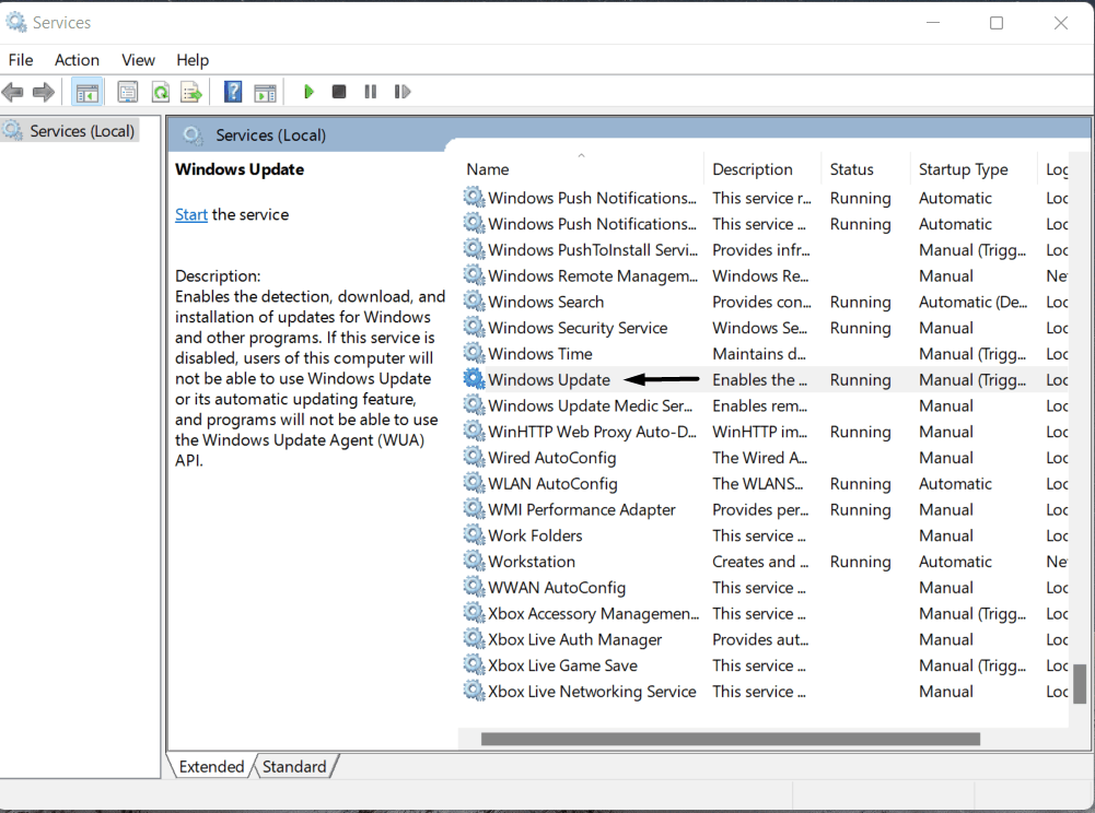 - Vuelva a la interfaz de servicios, luego busque“Actualización de Windows”.