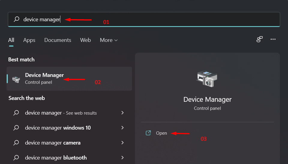 - Tipo "Administrador de dispositivos”y luego presione el botón "Ingresar" llave.