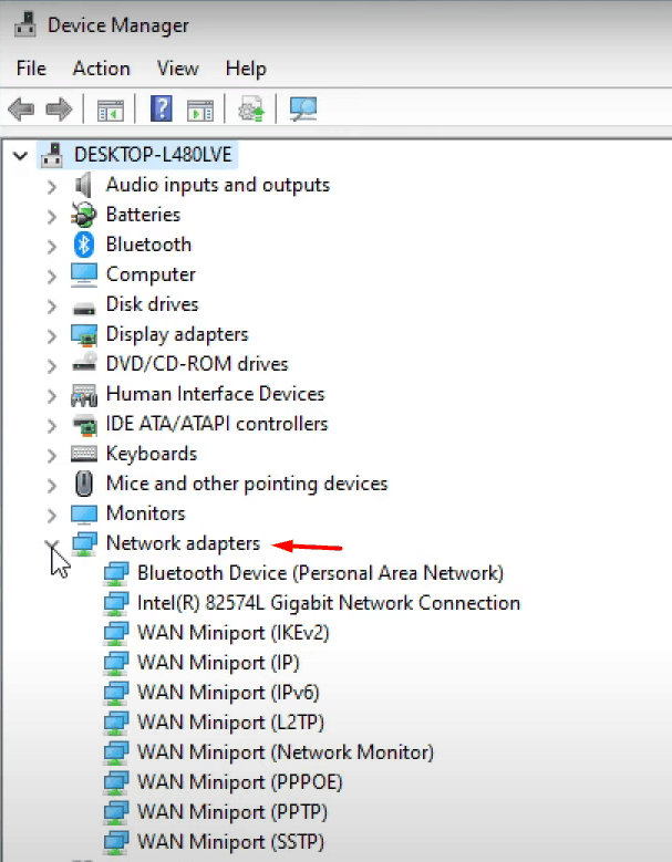 - Desplázate hacia abajo y haz clic en “Adaptadores de red”.