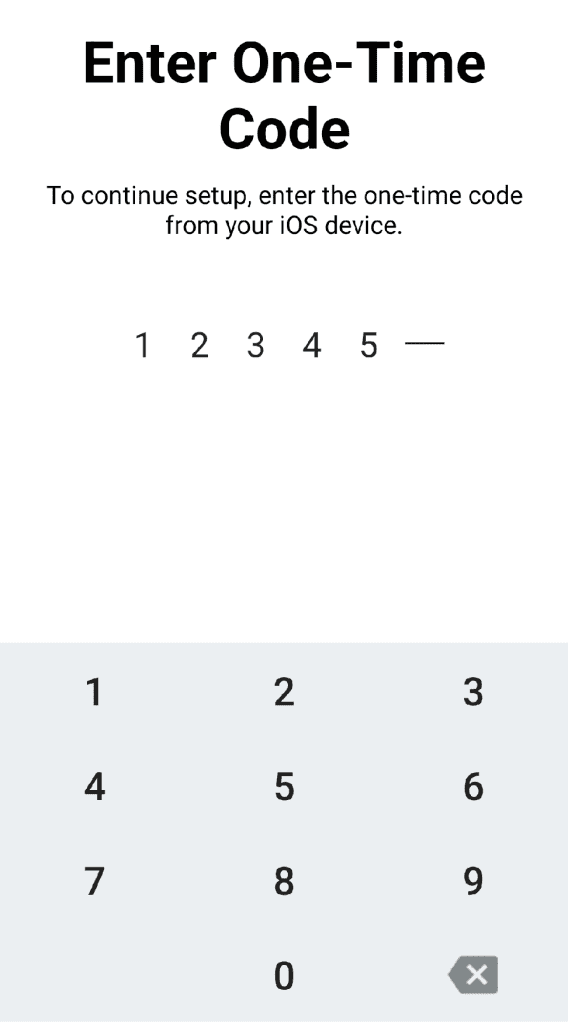 - Una vez que hayas pasado de Android, toca Continuar en tu nuevo iPhone. Pronto debería aparecer un código en su dispositivo iOS.