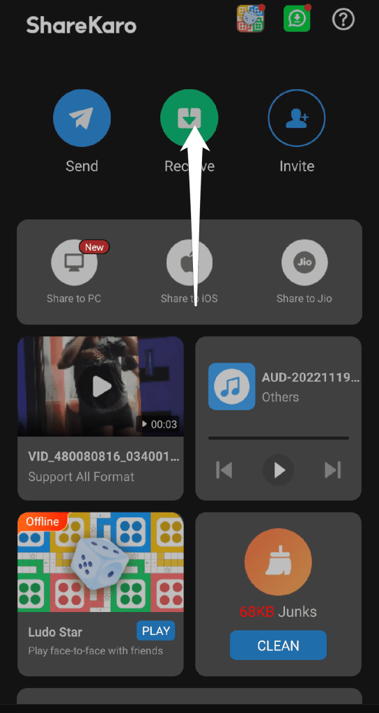 - Abra la aplicación ShareKaro en sus dispositivos iPhone y Android.