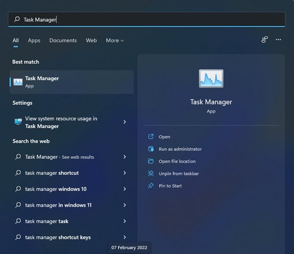 1. Abra el menú Inicio de Windows 11 y escriba Administrador de tareas. AbiertoAdministrador de tareasde la lista de opciones.