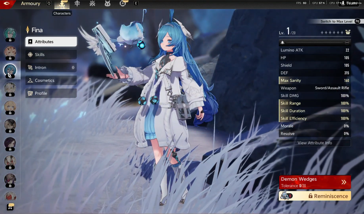Fina, un alma tranquila que se encuentra vagando por las calles de Islake, lleva profundas cicatrices emocionales pero empuña su arco con una precisión inigualable. Sus ataques infundidos por el viento golpean desde lejos y encarnan tanto la libertad como la tristeza en igual medida.