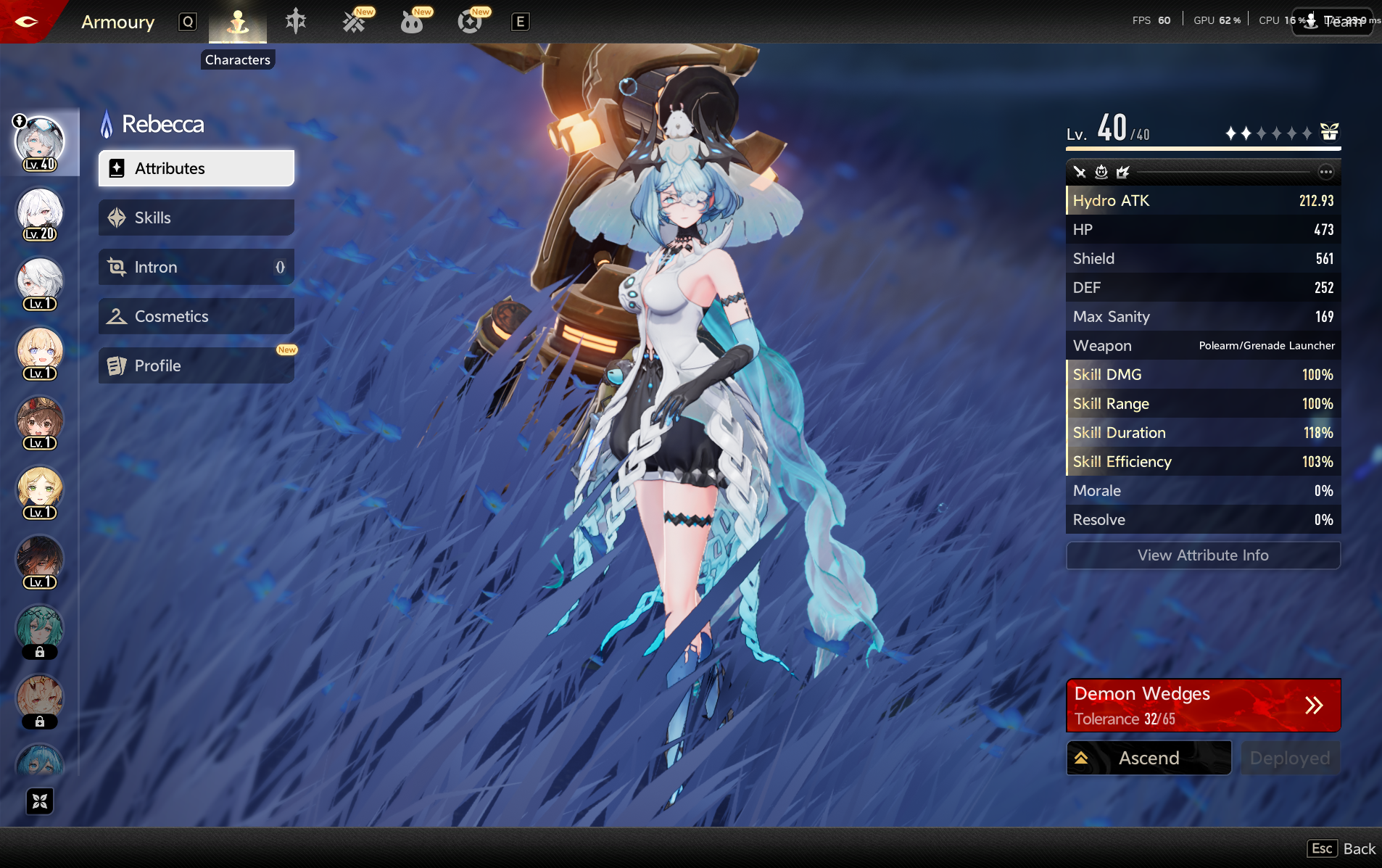 Un táctico elegante que prospera en el análisis y la observación. Cada movimiento de Sibylle está calculado, utilizando conocimiento y precisión para convertir batallas aparentemente desesperadas en victorias.