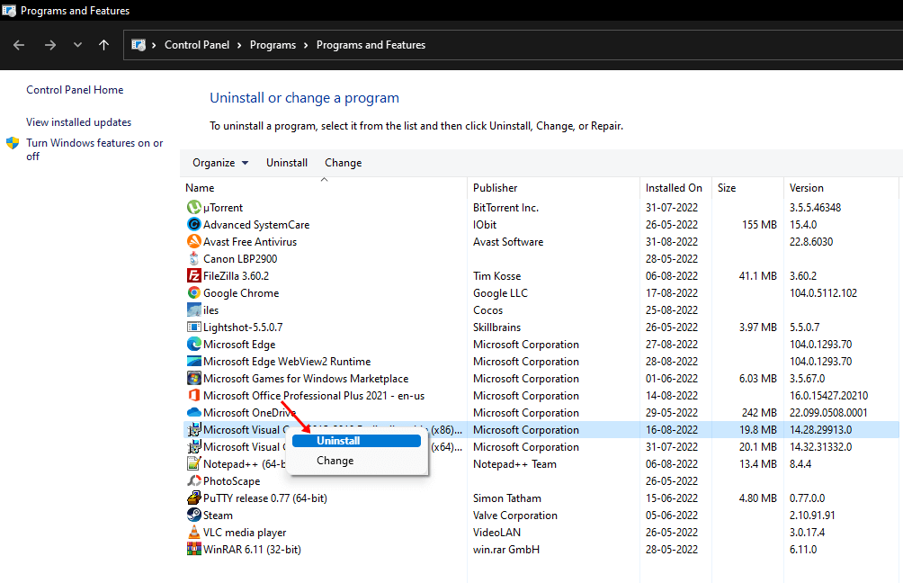 Otro método para solucionar el problema es reinstalar Microsoft Visual C++ 2005. Para hacerlo, siga los pasos que se indican a continuación: