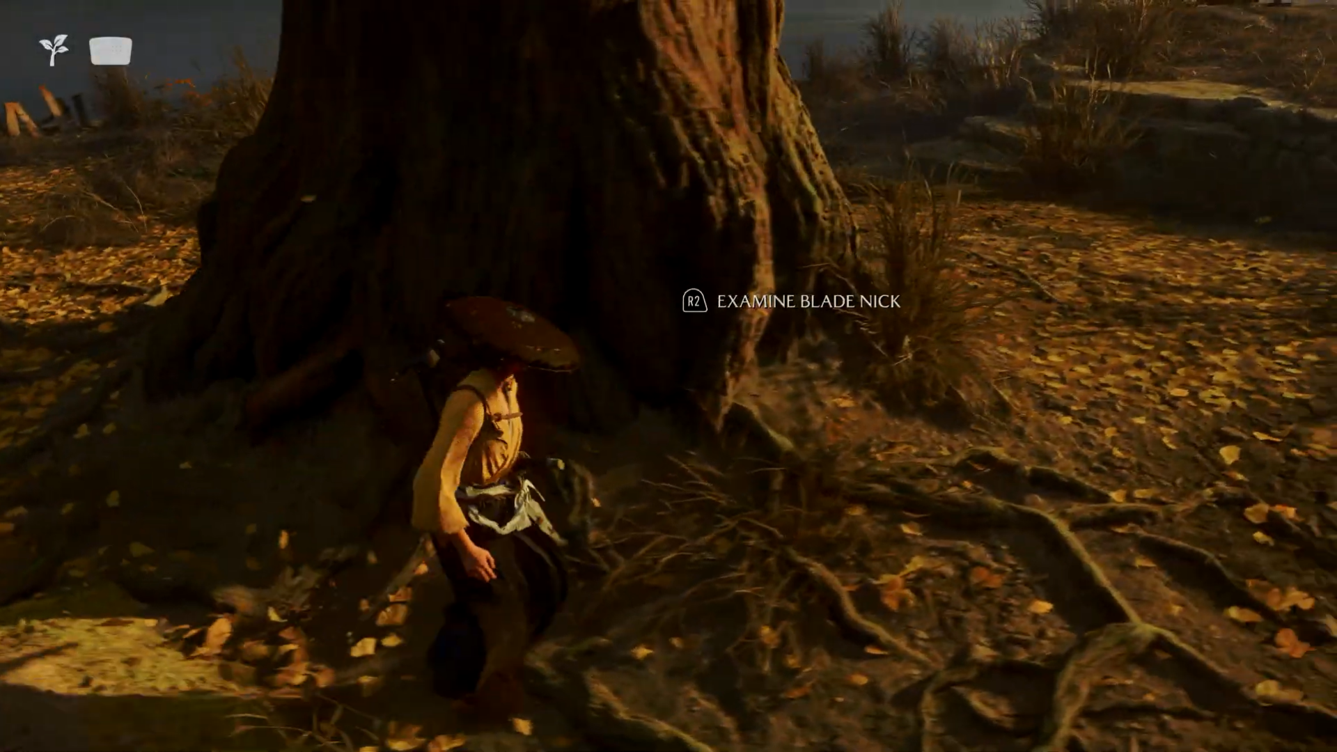 Habla con el árbol de los recuerdos mientras examinas el cuello de la hoja.