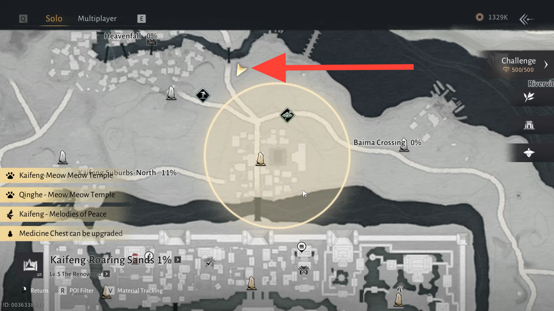 Para comenzar el capítulo Heavenfall Lost, dirígete a la ubicación marcada cerca de Heavenfall en Roaring Sands, Kaifeng. Una vez que llegues, interceptarás una carta entregada por un pájaro.