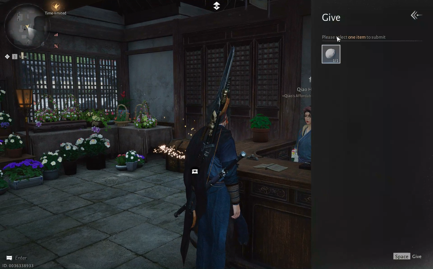 Visite la floristería de Qiao Hongyao. Ella explica que le falta una pastilla especial de flor de ciruelo y sospecha que es posible que un pájaro se haya ido volando con ella.